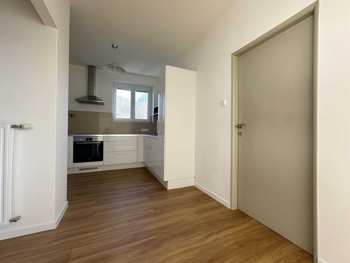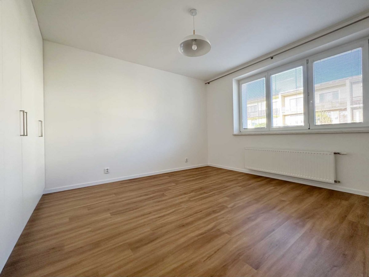 Byt je nezařízený, pouze kuchyňská linka včetně vestavěných spotřebičů - sklokeramická varná deska, trouba, odsavač par, vestavěná skříň po celé délce ložnice, úložné prostory na chodbě. V kuchyňské lince je prostor na vlastní myčku, pokud ji nájemce nebude mít, majitel prostor osadí kuchyňskými dvířky.